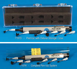 這是一款新型的用來(lái)拿取小的、片狀的物體的工具,常見(jiàn)與電子集成業(yè)、珠寶業(yè)、制模等等。在電鏡室,Pen Vac™也是很得力的一個(gè)工具:可以用來(lái)拾取銅網(wǎng)微柵、取樣品托、排膜、載玻片、蓋玻片等等,支撐時(shí)間可達(dá)一分鐘。