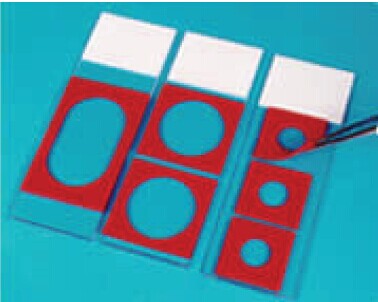 l 無需特殊載玻片,無需任何粘合劑,柔軟的硅膠圍欄使用簡單,貼吸性能強,形成疏水性的環繞樣本的試劑圍欄(試劑壩)