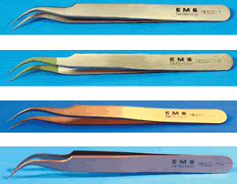 EMS鑷子進入中國市場十年來,逐漸得到了實驗室科研工作者的接納和認可,并獲得了不少贊譽。EMS 鑷子瑞士制造,材料選擇無磁性、抗酸蝕不銹鋼(特別材質除外),防炫目的緞面設計,高品質和革新是EMS鑷子的一直追求!對于電鏡工作者,EMS公司特別推薦style 3,style 3c,style 4,style 5,style 51s,style 5b,均可以用于電鏡微柵的精確取放。