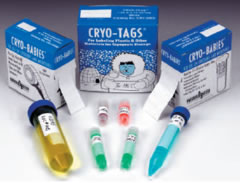 提供Diversified Biotech公司生產(chǎn)的大小不同,顏色各異的低溫標(biāo)簽。Cryo-Babies®系列標(biāo)簽是小標(biāo)簽,對應(yīng)的Cryo-Tags®是大標(biāo)簽。標(biāo)簽均由塑料聚烯烴制造,可以耐受常溫和低溫的貯存環(huán)境(液氮的-196°C也沒問題)。該系列標(biāo)簽可以粘貼于塑料、玻璃、金屬等物體表面,沸水浴100°C中以及干熱溫度達(dá)150°C時均不干裂、剝落和降解。此外,標(biāo)簽抗多種試劑、油、有機(jī)試劑、腐蝕性試劑以及其它可以導(dǎo)致剝落的潛在物。室溫下水中浸泡24小時以及100%濕度35°C環(huán)境下24小時均沒有問題。