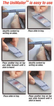 高密度聚苯乙烯制造,堅固不易破損,玻片取放簡單,可以在側面書寫標簽。適合儲存、郵寄及隨身攜帶。