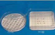 EMS染色盤,硅膠制造,用于電子顯微鏡樣品包埋后的染色和免疫組織化學操作時,其優勢遠勝于現行其他染色裝置。化學蝕刻過程、抗體孵育和染色都能在EMS染色盤小圓錐孔內操作。外尺寸長127.5mm、寬85.5mm、厚11.5mm, 8行12列共96個錐形孔(形狀類似微量滴定板),每個圓錐孔都是直徑7mm的倒錐形,深2mm,銅網漂浮或固定在其底端。圓錐孔能容納12-60µl溶液。可用Falcon 3072 Microtest™ III 96孔盤做蓋子。