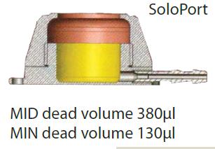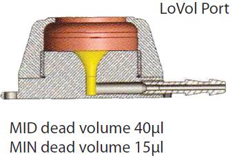 五、LoVol:鈦合金材料,非常低的死區容積,適用特別珍貴的藥品和收集小量體液,例如CSF INFUSION使用。LoVol port有兩種尺寸:MIN-LoVol(15μl)和MID-LoVol(40μl)配套使用22G 和24G針和輸液套件。通過下圖的比對,可以很快明白LoVol設計的奧妙!