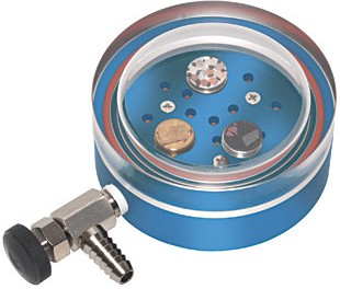 理想的運輸或保存SEM、TEM、FIB、AFM樣本的微型干燥器,可以保存12個標準的ø 12.7mm樣本臺或者2個ø 25mm或1個ø 50mm的樣本臺,樣本高度不能超過10mm,保存狀態為真空。底座材料為陽極化處理過的鋁,蓋子為10mm厚度的透明工程塑料,便于觀察。總體尺寸為ø76 x 35mm,美國制造。密封的O型圈可以適應10-3 mbar的真空,且保持數月之久。