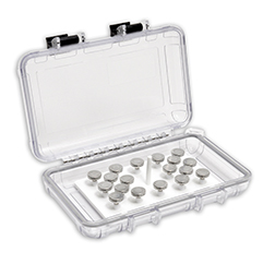 1.通用型儲存盒:盒子帶有內襯和蓋子,可裝12個樣品臺(臺面直徑是10mm或者15mm的圓柱體;或者銷釘的直徑是3.1mm的樣品臺)。