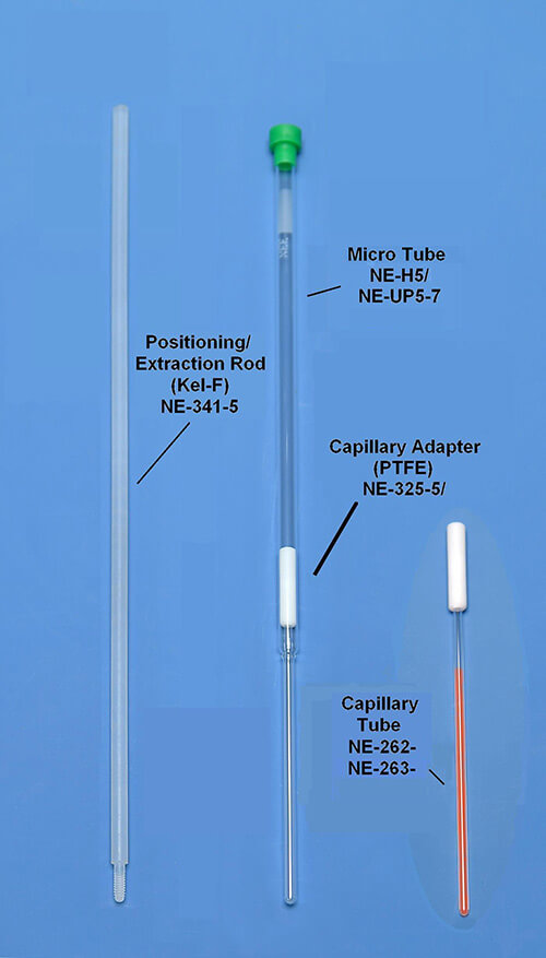 核磁管/毛細(xì)管套裝,包含一個(gè)核磁管(Micro NMR Sample Tube)、一個(gè)適配蓋子(one adapter)、一個(gè)拉取桿(one extraction rod)、5根毛細(xì)管capillaries。適于微量樣品15-115µl的測量。請參閱下表信息選擇最適合樣品體積和探針的核磁管和毛細(xì)管大小。樣品被放置在一次性毛細(xì)管中,對較小直徑樣品有著更好的分辨率。毛細(xì)管和管之間的殘余(環(huán)形)空間可以用其它材料填充,而不是直接將這些材料添加到樣品中。 這不僅使您的樣本盡可能集中,而且可用來1H,19F,2H測量。